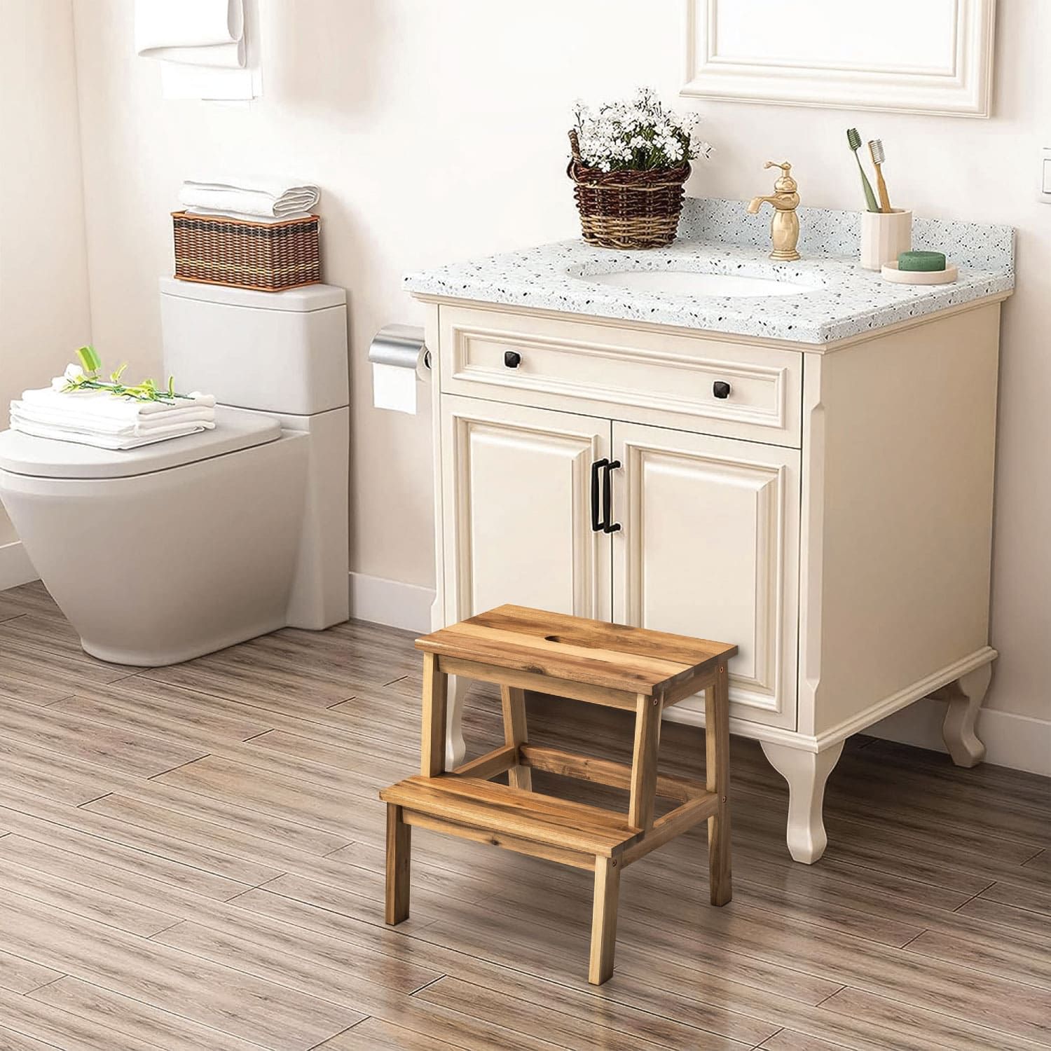 Ghế Bậc Thang Gỗ – Step Stool | 2 bậc chắc chắn | Gỗ tràm tự nhiên