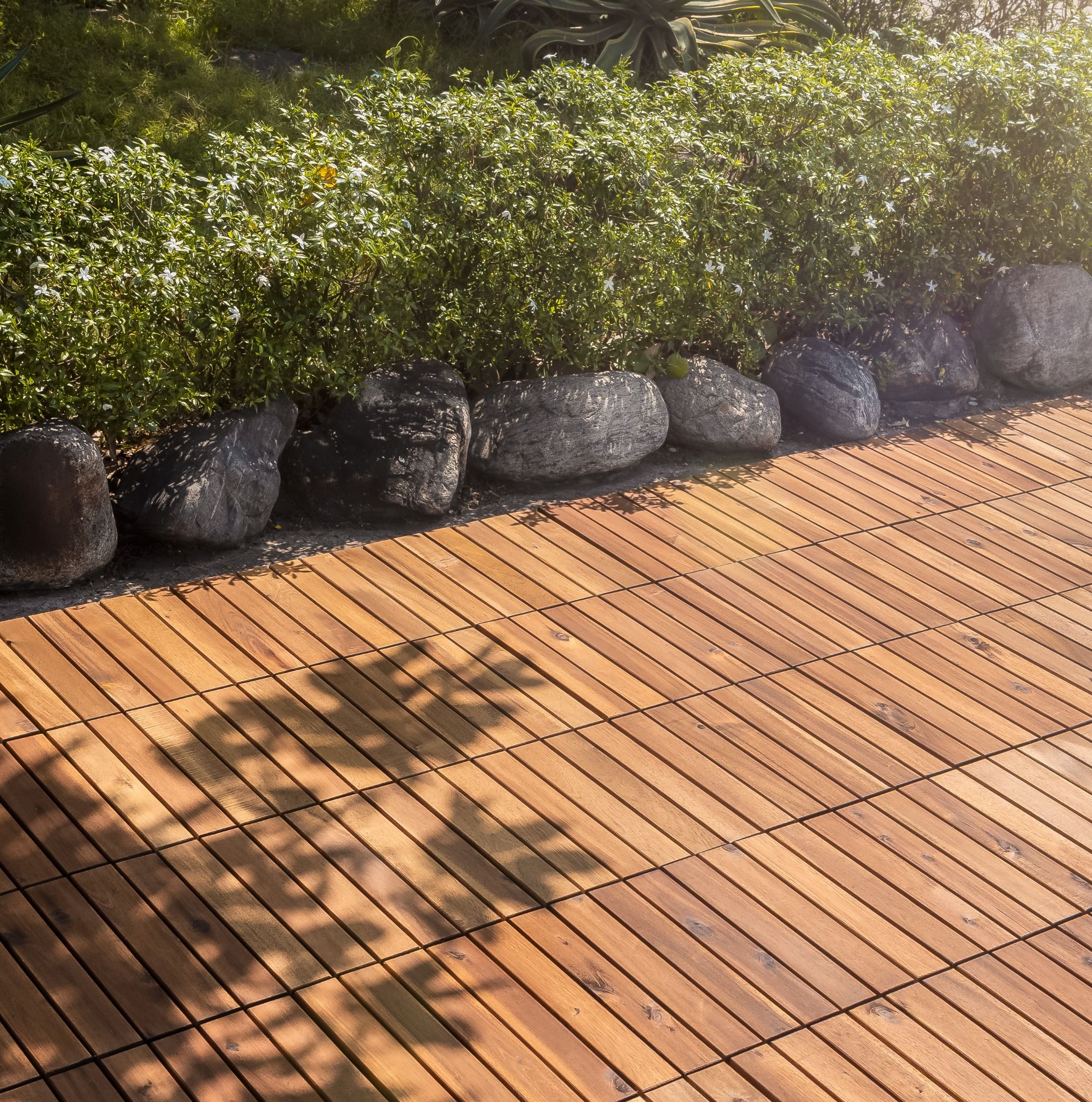 Vỉ Gỗ Lót Sàn 6 Nan Đế Thấp - Square Joint Floor Decking 6 Slats | Gỗ tràm tự nhiên | Đế nhựa chắc chắn | Kích thước 30x30cm