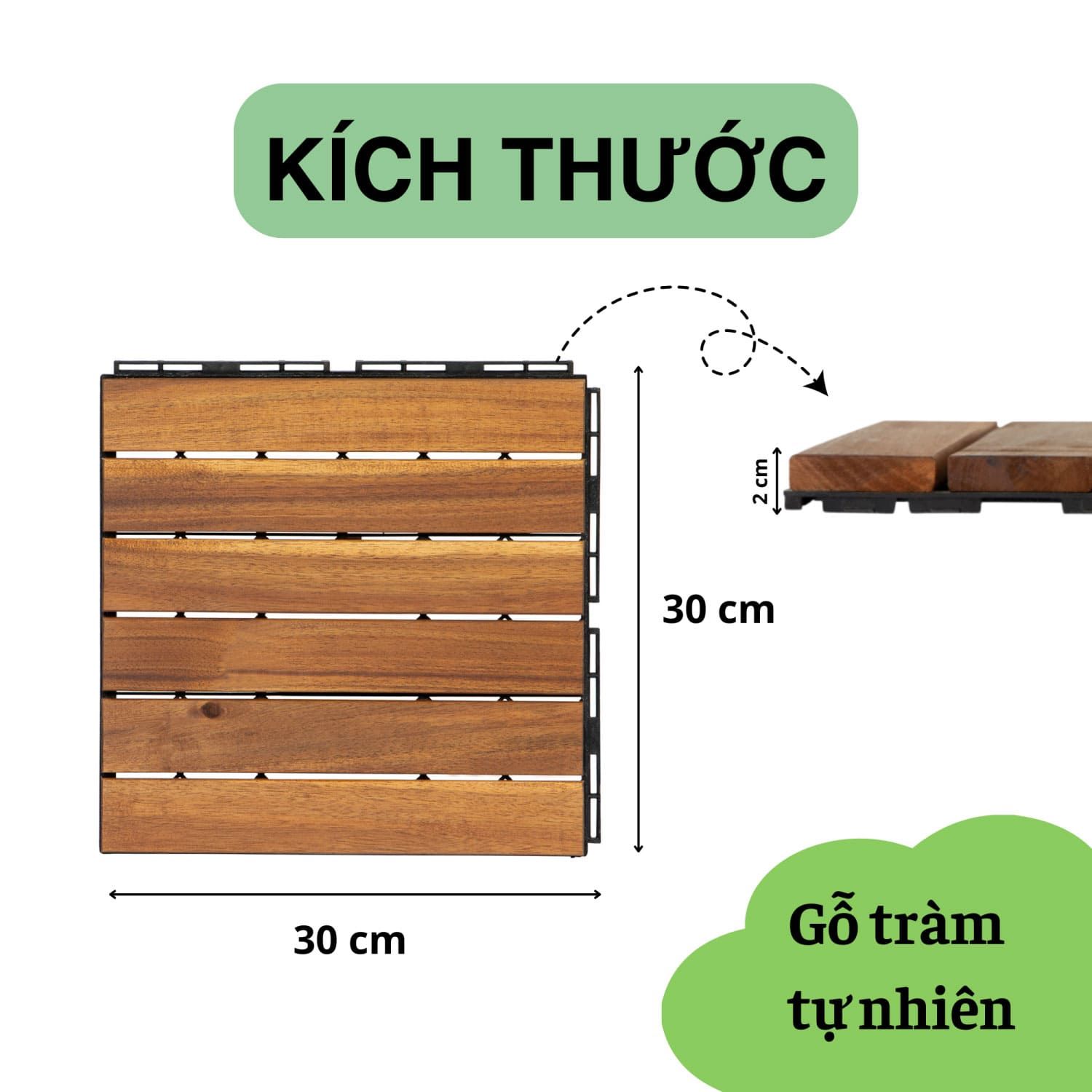 ✅ Kích thước tiêu chuẩn: 30 x 30 x 2 cm > mỗi miếng tương đương 0.09 m².