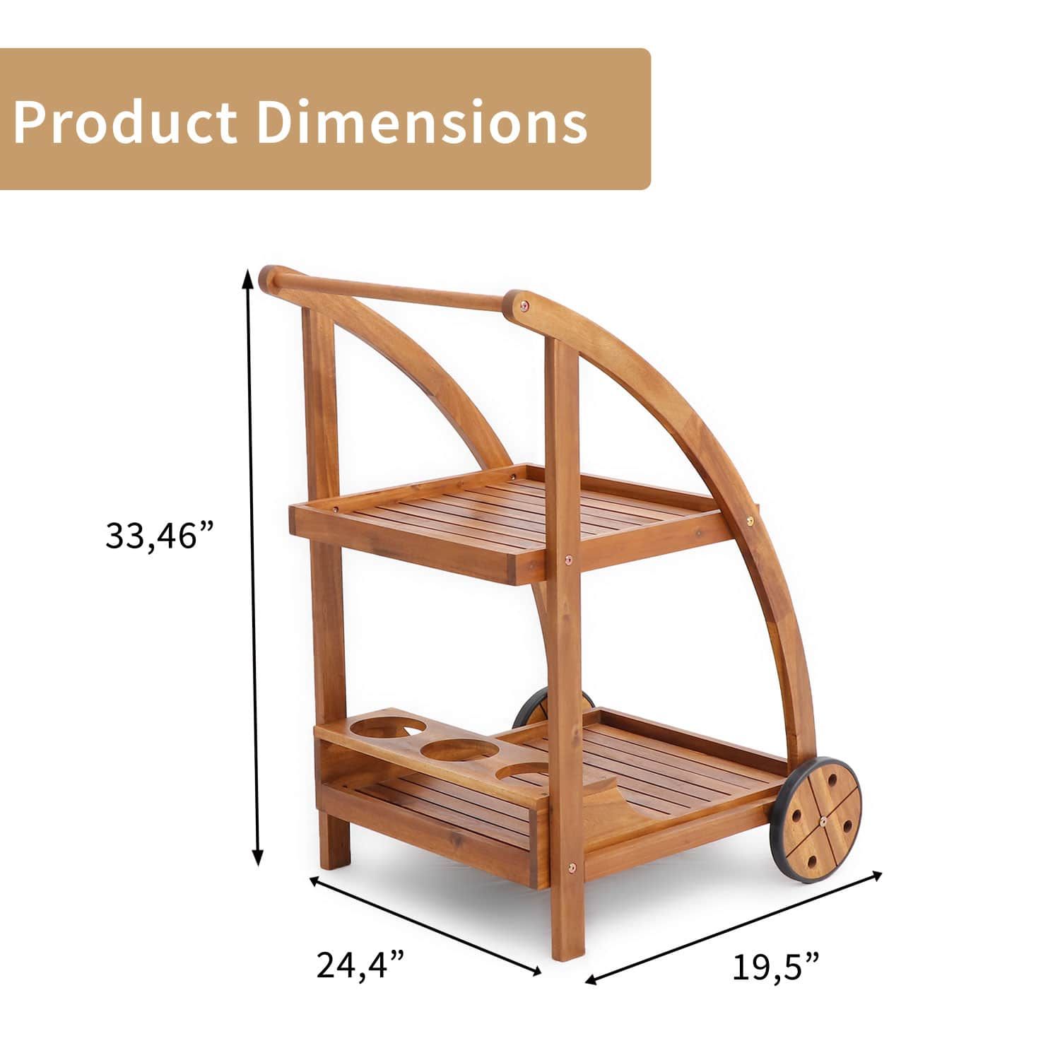 Xe Đẩy Quầy Bar Gỗ – Tea Trolley | 2 tầng | Có bánh xe tiện lợi